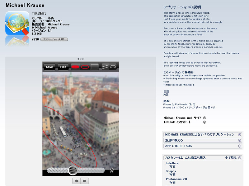 これまで一度も有料アプリを購入しなかったまるのですが、今回初めて「TiltShift」を購入~♪ ←ま230円ですしぃ。