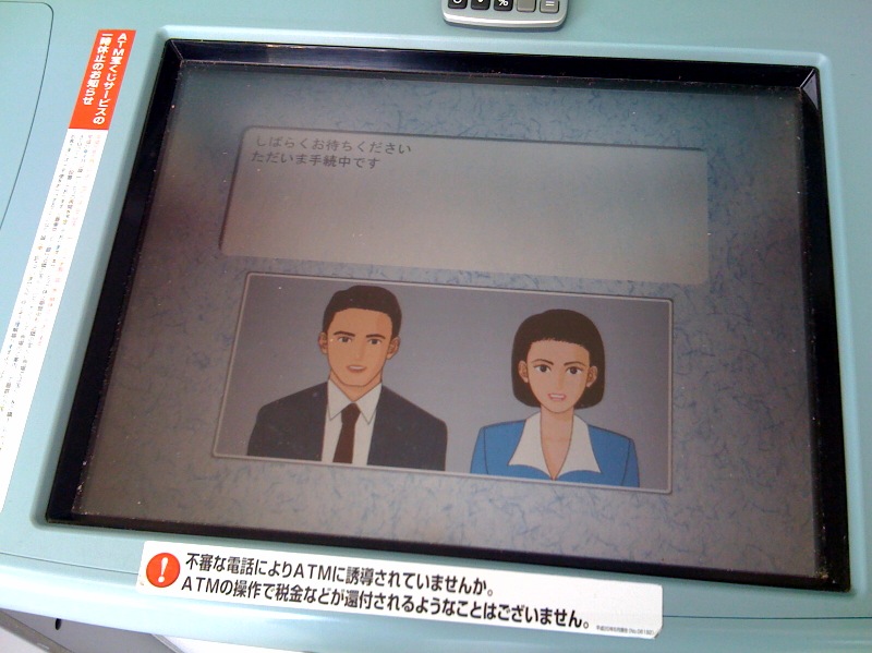 東京三菱◯FJ銀行のATMが新しくなってました。←あ、機械は同じで表示内容が変わっただけかも。それが最悪でしたわ。 んもね~、男女のイラストが 「いらっしゃいませ」とかお辞儀するアニメーション なんていらんのですよ~。